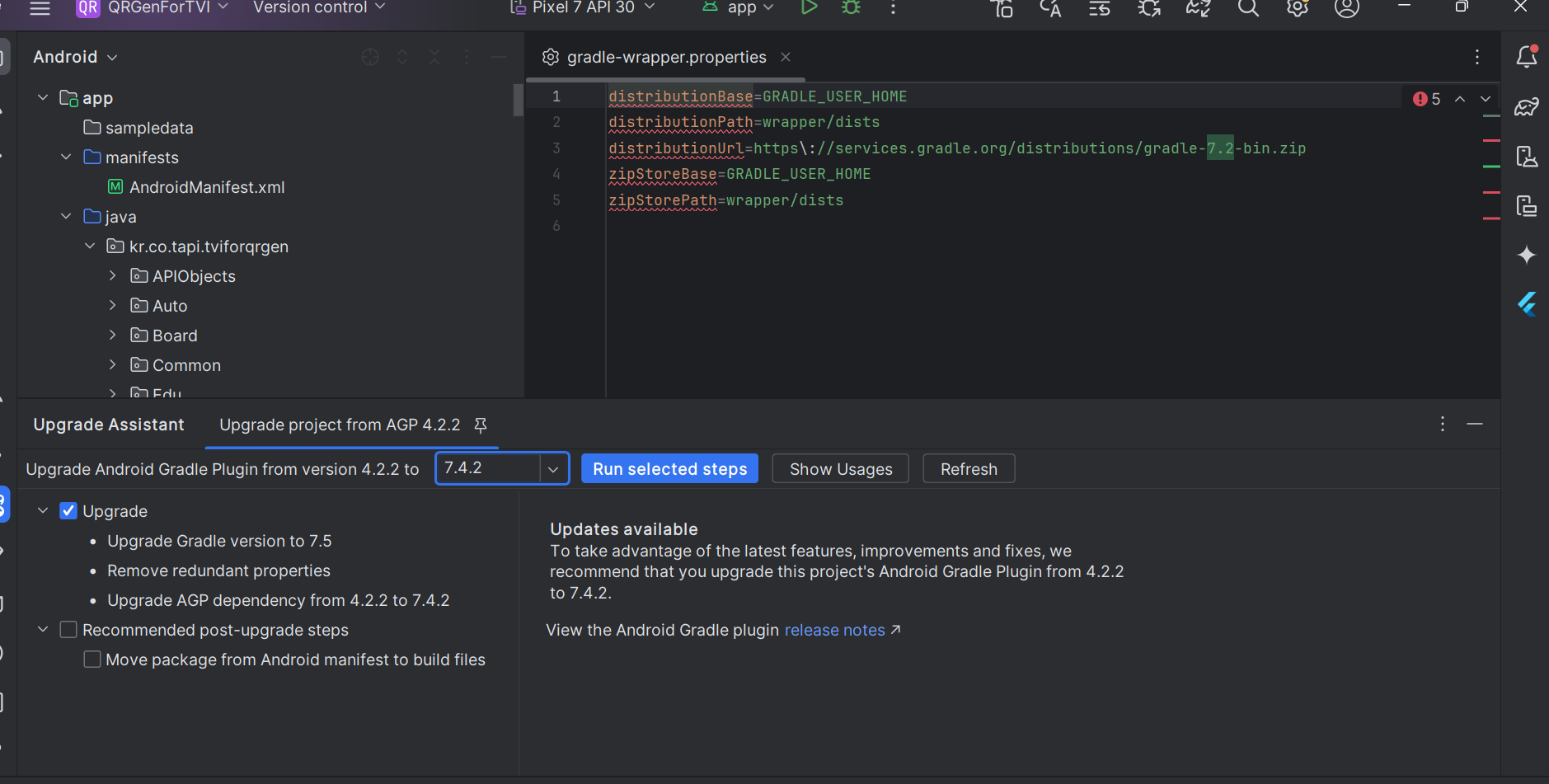 (근데 해당 파일에서 요구한 Gradle 버전이 7.2였었는데 그걸로 맞춰야 했나..살짝 걱정.. 일단 해봄.. '더 높은 버전이면 돌아는 가겟지 뭔들' 하는 마음)