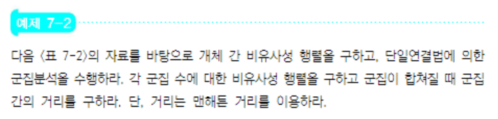 -단계별 거리 차가 작은거는 큰 의미가 별로 없다는 것. (??교재 다시 볼 것) -즉,,, 위 표의 경우, 군집을 2개 OR 4개로 하는 것이 제일 좋다.