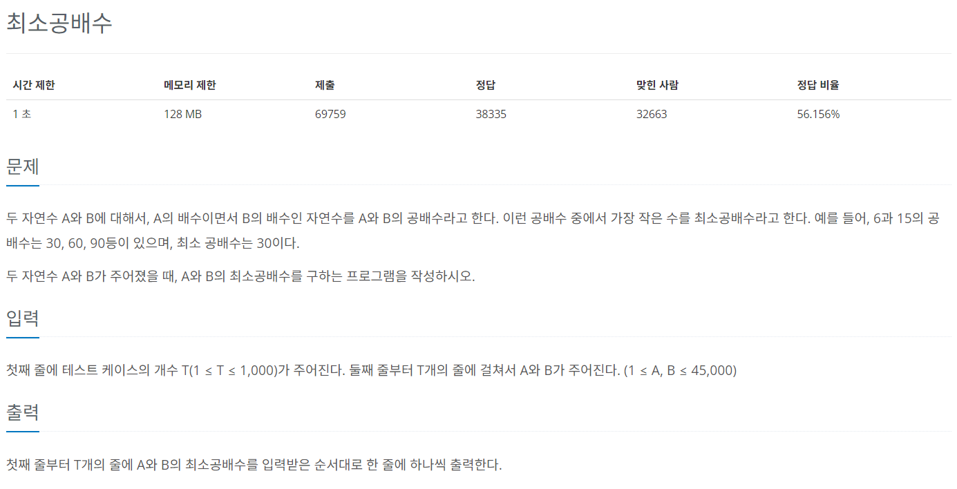 [백준 1934 / C++] 최소공배수