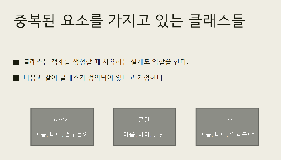 ▷ 클래스를 설계할 때 다른 클래스가 가지고 있는 부분을 물려 받는 것을 의미한다. ▷ 이를 통해 클래스마다 중복된 부분을 클래스 한 곳에 만들 수 있다.