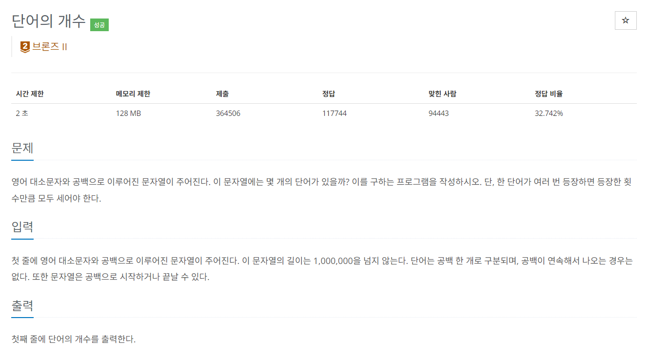 [백준1152] 단어의 개수- 미완성,재풀이예정