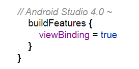 View Binding을 사용하기 위해서는 app 수준의 gradle 파일에 다음과 같이 추가해준다.