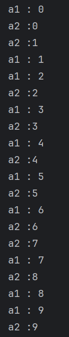 위와 같이 각각의 while문 a1, a2가 같이 실행됨을 볼 수 있다.