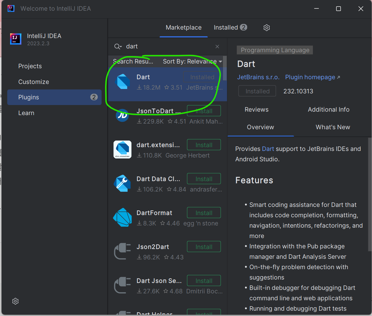 (1) https://dart.dev/get-dart/archive 해당 사이트에서 다운받는다.(2) 인텔리제이에서 플러그인에 들어가 Dart 다운 받아준다. (3) 프로젝트 생성 들어가서 Dart SDK 경로 설정