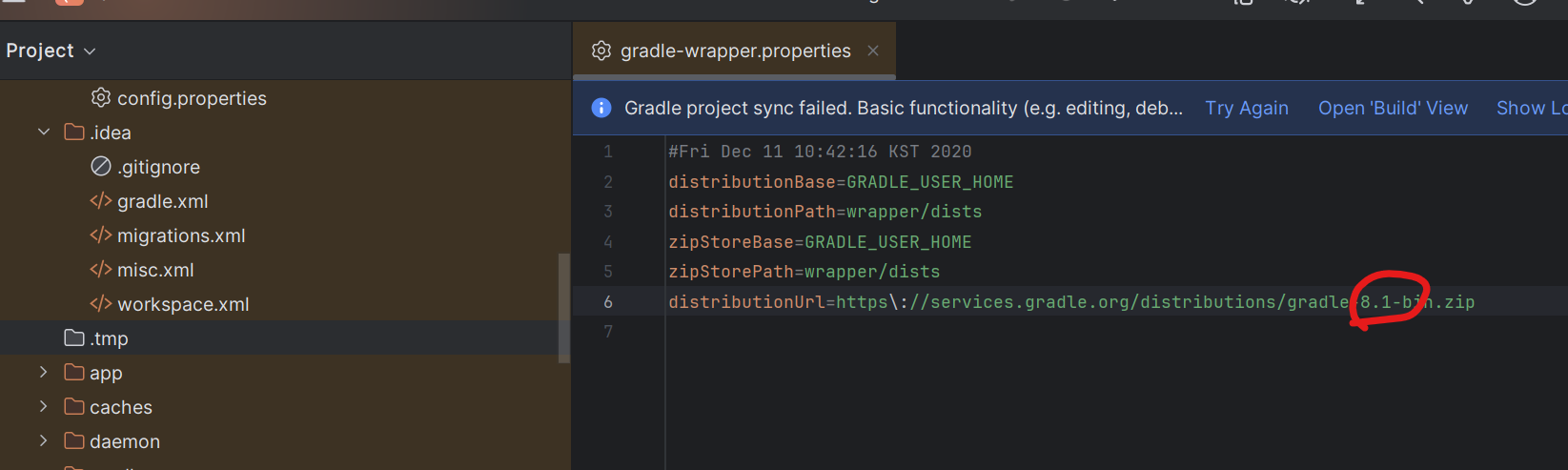 6.몇 이던 gradle을 8.1로 변경하였다.